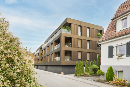 Das Ensemble in Nagold verbindet moderne Architektur mit zukunftsorientierter Nachhaltigkeit und bietet anspruchsvollen Wohnraum mit gestalterischer und technischer Exzellenz.