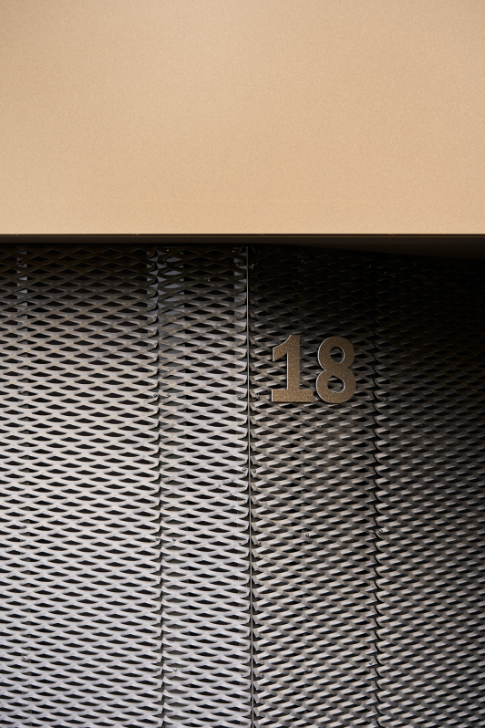 Es sind 15 Wohneinheiten von der Zwei-Zimmer-Wohnung bis zum Penthouse-Loft entstanden. Die Anlage wurde auf einem verbindenden Sockelgeschoss in zwei Baukörper aufgeteilt. Die Fassadengestaltung kombiniert innovative Materialien mit einer präzisen Verarbeitung. Unsichtbar befestigte Alucobond-Paneele in Verbindung mit profilierten Fassadentafeln erzeugen einen changierenden Bronzeton. Ergänzt durch eloxiertes Streckmetall entsteht eine dynamische Interaktion von Licht und Struktur.