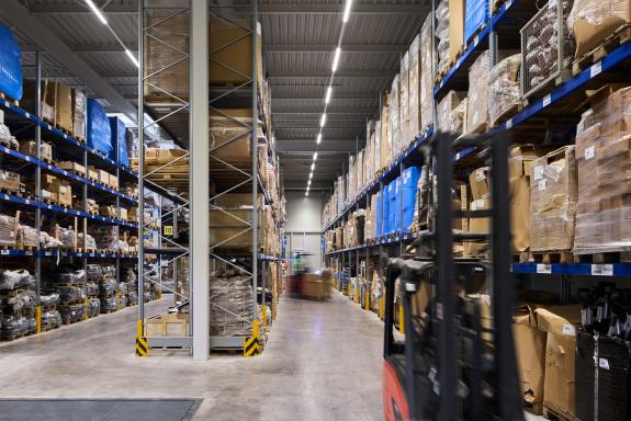 Das Gebäude besteht aus 4 wesentlichen Bausteinen: Das Lager mit dem Anlieferungsbereich und einer maximierten Lagerhöhe, ein Versand.- und Kommissionier- Bereich, ein Sozialbereich mit Umkleiden und einem großzügigen Pausenraum sowie dem neuen Vertriebsbüro im Obergeschoss, daß mit seiner Zwei- Geschossigkeit überraschende räumliche Qualität erzeugt.